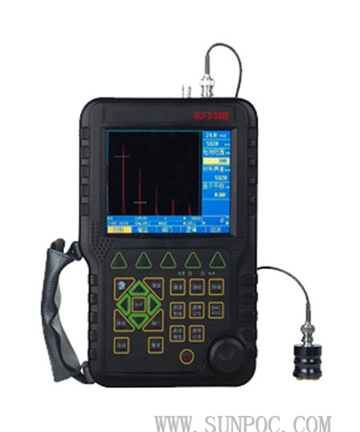 SUFD-500B Portable Ultrasonic Flaw Detector adopts the international advanced IC technique and new style color TFT LCD display. Its each performance index all arrive or even beyond international excellence. The instrument uses the artificial intelligence technology. It has very strong function and can be used very convenient. SUFD-500B can test, orient, evaluate and diagnose various flaws such as crack, lard, air hole in work piece’s interior swiftly and accurately without any destruction. It can not only be used in lab but also can be used on engineering site. Also, it can be widely used for safety checking and life evaluating in fields of aeronautics, rail transportation and boiler pressure vessel. With English display, master-slave menu, shortcut key and digital swiftly knob, it’s designed with leading technology and can be used very conveniently. With digital color TFT LCD display, it can choose the background color and wave color according to the environment. And the LCD brightness also can be set freely by your-self. Designed with high performance security guarantee battery module, its easy for disassembly and assembly. And it can charge independent with offline. And the large capacity and high performance Lithiuion battery module make the instrument’ continuously working time to above 8 hours, With small size and light weight, the instrument can be hold by one hand. It’s durable in use and lead industry trend.