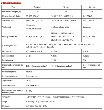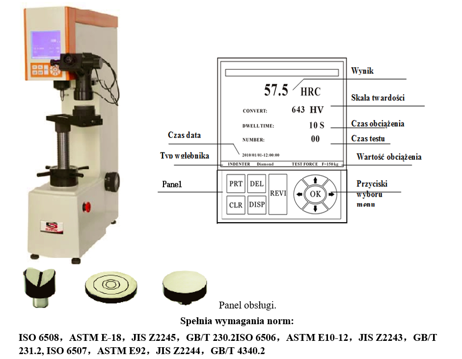 Twardościomierz uniwersalny Rockwell, Brinell, Vickers SBRV-100D SUNPOC (ekran LED)